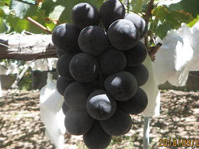 | (左) 第1巨峰園樹木No7-11高墨。紫玉群が元気ないのに対して高墨群はなんとか頑張ってます。9月20日ごろからが出番です。皆さま待っててね。 (右) 山の上巨峰園のピオーネ。約330房。ボリューム感満点。もう美味い。ピオーネ食べたい方はご連絡ください。2キロ箱に4房入れて2,500万円でお分けします。 8月を通り越して1ヵ月ぶりのぶどう通信なので皆さまにお伝えしたいことが山ほどあるのですが明日から早朝勤務だしもう寝ないといけないので今日はこれでオシマイ。いや実は.......。早々と注文を締め切らせていただいたシャインマスカットにモンダイが浮上。自分も未知の世界なのでこの先どうなるかわかりません。詳細は後日ね。シャインをご注文の方へ。「頼んでいるシャインちゃんおいしくなあれおいしくなあれ......」と日々念じてください。そうしてくれないとちょっとヤバいかも。それではおやすみなさい。 |