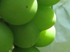 | (左) 貝甲干(ベイジャーガン)。 摘粒の加減が相変わらずわからないわけわからん中国のコンニャロ系ぶどう。でも中国ではここまで手を入れることは絶対していないことだけは間違いなし。レインボーお試しセットのすき間埋めでしかなかったという去年までの悲しい運命から脱却して贈答セットに入れてもらえるような存在なってほしいと園主は願っておりますがどうなることか。結果は9月に判明。今年130房。 (右) 樹木No7-8高墨のハート粒。豊満おっぱい型と呼ぶ人もいます。JAの指導ではこういう変形粒は摘粒作業の段階で落とすことになっているのですが、なかがわぶどう園ではこういうのこそおもしろがって残すことにしています。このハート巨峰、だれのところにもらわれていくのかな.........。 |