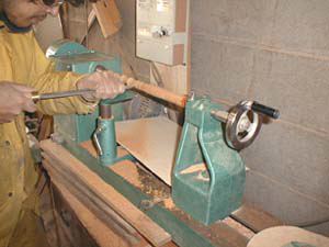 木を回転させ、そこに刃物を当てれば回転体ができ、木のお椀やつまみができます。